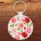 Tropical Hibiscus and Plumeria Floral Pattern Key Ring