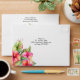 Set the tone for your tropical wedding with this exquisite envelope adorned with vibrant hibiscus blooms in shades of orange, pink, and pinkish-red. Perfectly capturing the essence of a beachside celebration, this envelope adds a touch of tropical elegance to your wedding invitations. The lush floral design beautifully frames your personalised details, making it a stunning first impression for your guests. Whether you're celebrating on the sandy shores or bringing the beach vibes to your wedding, this envelope is the perfect match for your Tropical Hibiscus Beach Destination wedding suite.