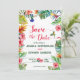 This wedding save the date features watercolor tropical palm leaves, pink hibiscus, tropical florals and birds, and a colourful script font. This makes the perfect addition to your tropical beach luau or island wedding celebration. Easily add or delete the QR Code to the backside along with your wedding website for a personal touch.