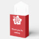 Give your guests, bridesmaids, groomsmen, or anyone else a special treat with these customisable favour boxes featuring a cherry red background with a white hibiscus flower and tropical leaf on the front, back, and flap of the box. Each of these sides also features some sample text that you can customise for your own summer or tropical-themed wedding or event. Be sure to check out the other products in the Tropical Hibiscus in Cherry set to create a truly coordinated look for your event.