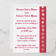 Bring touch of summer splendour to your event with this wedding invitation featuring a bright raspberry pink border on the right side, decorated with a pattern of hibiscus flowers and tropical leaves that are printed in real foil. The left side of the card has plenty of space for all of the details for your special event with some sample text in place that can be customised to fit your needs. A large hibiscus flower and tropical leaf in bright pink finishes things off on the back to create a dreamy final note. This invitation will match with any other Tropical Hibiscus in Raspberry product so that you can easily make your event as coordinated as you desire.