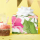 Beautiful green & pink tropical leaves & flowers, seamless repeat pattern