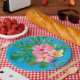Pretty and fun! This plate was designed for a bridal shower with a Hawaiian theme. Perfect for any event! Coordinates with everything in the Tropical Hibiscus collection.