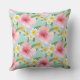 Tropical Hibiscus Plumeria Pattern Aqua Cushion