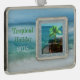 Beautiful silver rectangular with small square framed Christmas ornament featuring Tropical Holiday design - inspired by our song Tropical Breeze - Great for Christmas beach house decor!