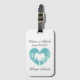Tropical honeymoon destination custom wedding gift Luggage Tag for honeymooners. Romantic weathered palm tree heart logo with your unique location text. Personalised design with elegant script typography for name of bride and groom plus date of marriage. Create them for bride and groom couple. Perfect for classy summer wedding, bridal shower and bachelorette party. Popular destinations; Virgin Islands, Bahamas, Cayman Islands, Saint Lucia, Aruba, etc. Rustic teal blue / turquoise love icon symbol.