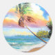 The colours are beautiful in this seascape scene which includes palm trees and a sailboat. Featuring the original oil paintings of Artist Mazz