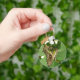 This stunning keychain features a photograph of a beautiful tropical butterfly. It has beautiful iridescent green markings all over its wings. It has its wings folded while it rests on some leaves. The photograph was taken using macro photography for a stunningly detailed result.