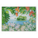 Watercolour of tropical island with mangoes, cacao, breadfruit and orchids.
