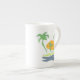 Tropical island beach scenery. Outline palm tree Bone China Mug