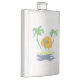 Tropical island beach scenery. Outline palm tree Hip Flask