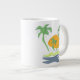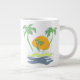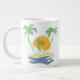 Tropical island beach scenery. Outline palm tree Large Coffee Mug