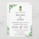 Vibrant watercolor tropical island foliage and floral pineapple shape with matching arrangements, wedding invitation. Customise text, font style, colour and size.