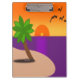 TROPICAL ISLAND WITH PALM TREE, SUNSET AND BIRDS