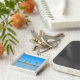 A beautiful key-chain showing a great view on three palms island. If I look at it I want to go on vacation and spend some time on a tropical beach.