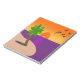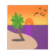 TROPICAL ISLAND WITH PALM TREE, SUNSET AND BIRDS