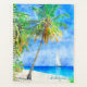 Tropical Island Palm Tree with Sailboat Planner - for when you have to work but you really just want to plan your next vacation to the Caribbean or the South Pacific! Dream all day with this beautiful design faturing an artistic watercolor painting of a distant boat sailing off the coast of a warm, sandy beach.