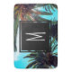 Palm trees tropical island design with a modern black decorative square with your choice of initial letter in white.