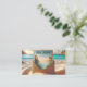 A sandy beach features an open envelope revealing a framed scene of a tropical island for travel agent.