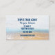 A tropical island postcard scene with spilling ocean water, starfish, and beach sand in an envelope on a whitewashed wood background for a travel agent.
