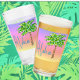 This classic tropical shades of an island sunset on this beverage glass is a summer must. Add a colourful palm tree and aloha and it becomes a tropical vision! Can't you just taste that piña colada? You can change the text to your name or whatever message you want.