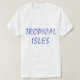 Mosaic graphic, of the words, "Tropical Isles", displayed in-exotic, island patterns, of, fuschia, red, turquoise, blue, yellow, white, and black.