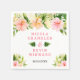 This beautiful and elegant wedding napkin features watercolor pink and orange hibiscus flowers and foliage. The text combines handwritten script and serif fonts for a stylish and modern look. This is perfect for a summer tropical wedding.