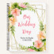 This beautiful and elegant notebook would make a great wedding planner, photo album, guest book and more. The design features watercolor pink and orange hibiscus flowers and foliage on a gold geometric frame. The text combines handwritten script and serif fonts for a stylish and modern look. This is perfect for a summer tropical wedding.
