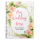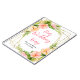 This beautiful and elegant notebook would make a great wedding planner, photo album, guest book and more. The design features watercolor pink and orange hibiscus flowers and foliage on a gold geometric frame. The text combines handwritten script and serif fonts for a stylish and modern look. This is perfect for a summer tropical wedding.