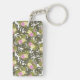 Tropical Jungle Leaves and Hibiscus Pattern Key Ring