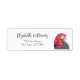 Topical jungle parrot return address label, with a colourful macaw illustration and customisable script lettering. A great way to add a touch of the jungle to your school or office supplies.