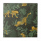 Tropical Jungle Pattern with Jaguar palm leaves ceramic tile