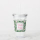 This Tropical summer acrylic tumbler design features tropical banana leaves on a light pink background. In the centre is a notched square frame with the phrase "bride tribe."