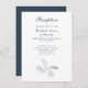 Elegant Wedding Reception Card features a stylish typographical design with a minimalist vintage tropical palm leaf line art illustration in a navy blue colour. The colour theme carries onto the back of the card with the tropical leaf image shown in white. This piece of wedding stationery is ready for you to customise with the details of your special day. Part of an ever-growing collection.