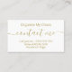 These light an airy business cards are for professional home and office de-clutterers and organizers, consultants, personal assistants or personal shoppers. The design features tropical leaves around a gold FAUX foil text frame.