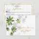 This romantic tropical beach wedding reception dinner invitation and RSVP enclosure card features tropical leaf greenery and shadows, and trendy faux gold foil calligraphy script on a white background, and also includes a response via your wedding website. Perfect for the simple reception for the tropical destination wedding.