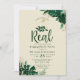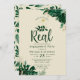 Tropical Foliage Modern Greenery and Leaves Border Personalised This Just Got Real with Gold Rings engagement party Invitations. Perfect for your tropical themed party invites. In a bold colour palette of rich greens, emerald, and gold foil look. This design is perfect for a beach, destination, or summer celebration. With feelings of a tropical paradise, this vivid palm leaf design will compliment your beach or tropical venue. In a dark green, teal, emerald, greenery, and gold colour scheme - This Just Got Real with Gold Rings engagement party Invitations.