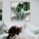 Decorate your wall in style with this beautiful tropical foliage print featuring palm fronds and philodendron leaves in dark green on white background for a modern look. One of a collection of square abstract and modern art prints, it works well displayed on its own or in a grouping with others from the collection. Available in additional colours.