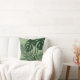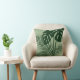 Add a touch of class to your decor with this beautiful tropical foliage throw pillow featuring palm fronds and philodendron leaves in dark green on lighter green background for a modern look. Available in additional colours.