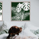 Decorate your wall in style with this beautiful tropical foliage print featuring palm fronds and philodendron leaves in white on dark green background for a modern look. One of a collection of square abstract and modern art prints, it works well displayed on its own or in a grouping with others from the collection. Available in additional colours.