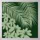 Add some style to your living space with this beautiful tropical foliage print featuring palm fronds and schefflera leaves in light green on darker green background for a modern look. One of a collection of square abstract and modern art prints, it works well displayed on its own or in a grouping with others from the collection. Available in additional colors.