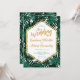 This tropical wedding invitation features a green and white colour scheme. A cute gold script font is used for the heading and couple's names, and in sans-serif is the details of the event, including the location, date, time and RSVP. The background features a hexagon with a faux gold foil border, and green palm leaves for tropical summer style. ••• For more wedding suites, visit my store Zazzle.com/EventsByJessicaAmber ••• For custom orders, message me on Zazzle