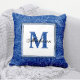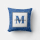 Tropical Leaves Blue Patterned Monogram Line Art Cushion