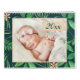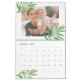 Moody deep blue green background with watercolor tropical leaves, palms, and flowers botanical print photo calendar, with editable year. This trendy design features both full and collage photos.