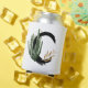 Tropical Leaves Faux Gold Foil Letter C Monogram Can Cooler