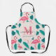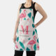 Tropical Leaves Hot Pink Flamingo Modern Monogram Apron