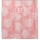 This blush shower curtain with white tropical leaves and your last initial in a modern cap font in white inside a double circle would look fabulous in your home. Simple, modern, elegant.