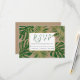 Tropical green and gold monstera and palm leaves kraft paper wedding RSVP card It showcases a pattern of tropical leaves with gold outline on kraft paper style and your text in a white frame. The back includes a gold polka dot pattern.