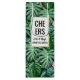 Cheers wine gift bag made with an image of big leafy lush green tropical leaves with a splash of pink behind. Painted with acrylics and digitised.A white frame with a faux gold foil border layered over top with the text inside.