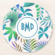 Tropical leaves pattern round paper coaster